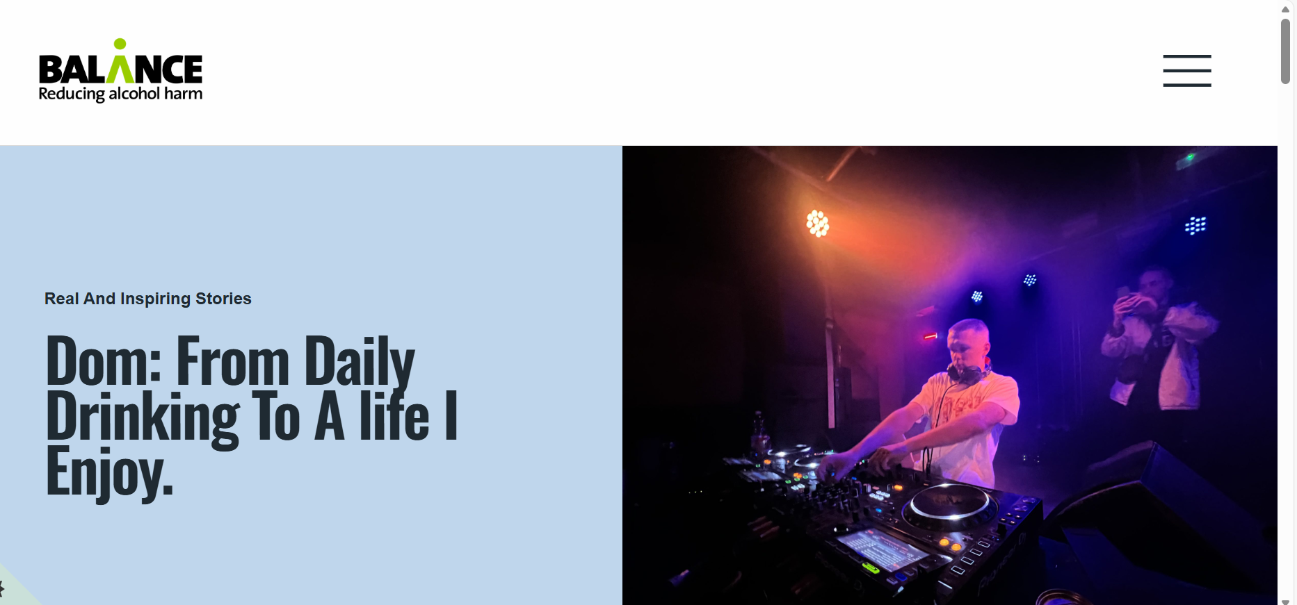 Some Revival members have now shared their personal stories of alcohol harm through the Balance website, helping to show the real human impact behind the statistics. Dom: From Daily Drinking To A life I Enjoy. - Reduce My Risk